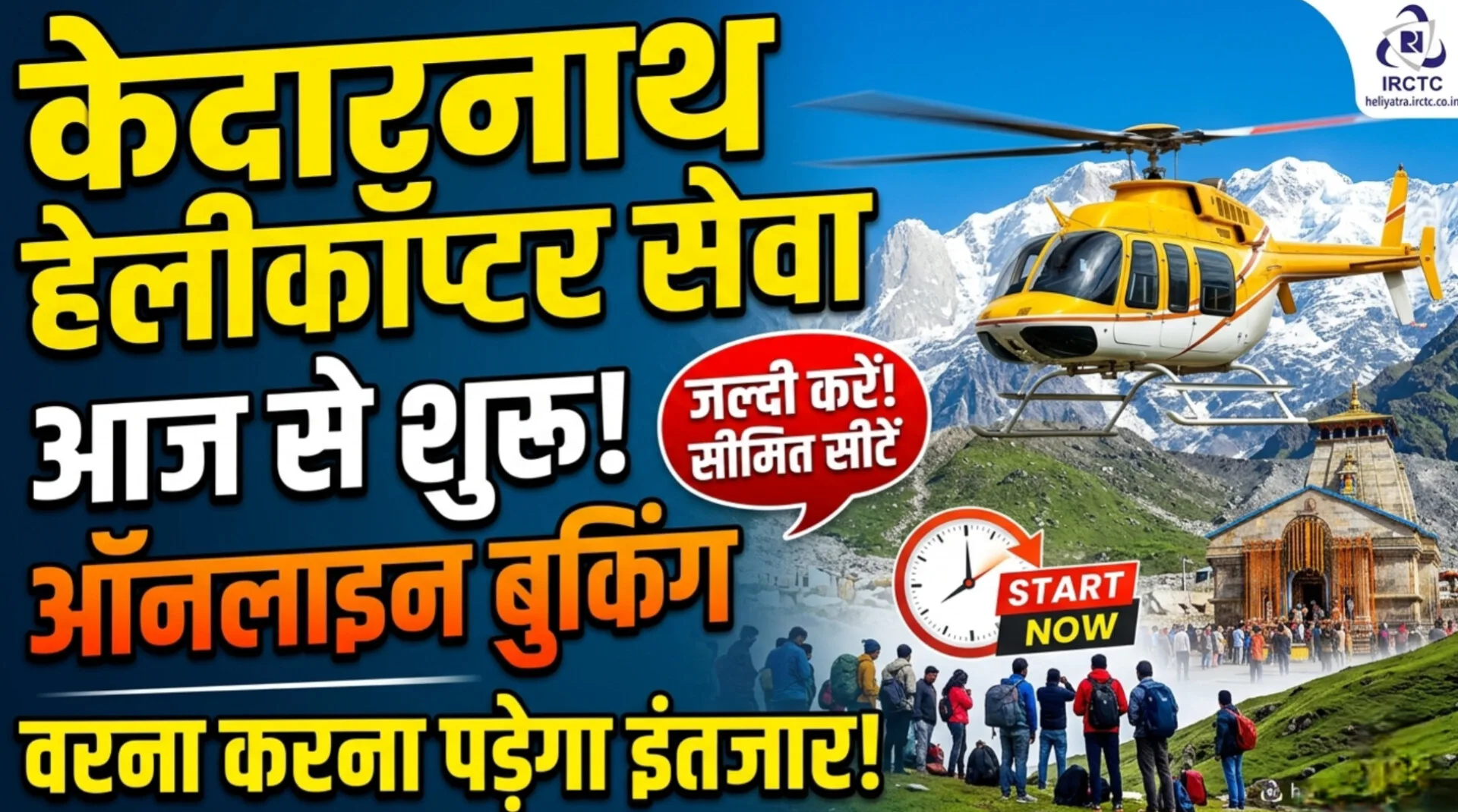 उत्तराखंड नागरिक उड्डयन विकास प्राधिकरण (यूकेडा) के निर्देशों के अनुसार IRCTC ने केदारनाथ हेली शटल सेवा के टिकट बुकिंग की पूरी तैयारी कर ली है। आधिकारिक जानकारी के मुताबिक, शनिवार को शाम 6 बजे से हेली सेवा की टिकट बुकिंग शुरू कर दी जाएगी। इसके लिए यात्रियों को IRCTC HeliYatra Portal पर जाकर ऑनलाइन बुकिंग करनी होगी।